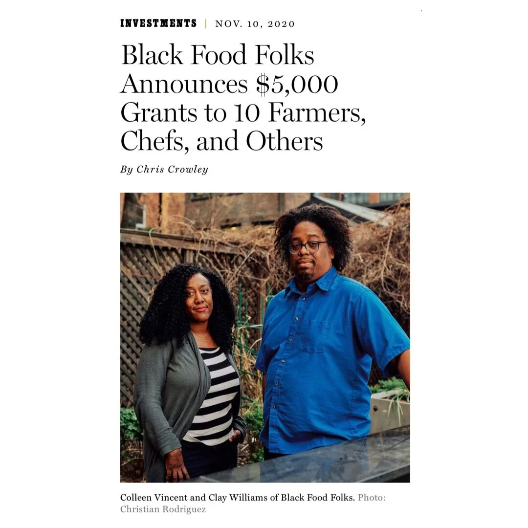 “Last week, while tension and anxiety built on the eve of the election, the founders of the online food platform Black Food Folks announced some good news. They were awarding $5,000 grants to ten different Black people who work in food, from those who are feeding the hungry to aquaponic farmers to podcasters.” - Grubstreet