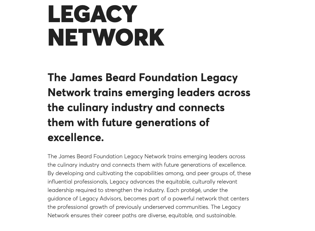 Today, we are excited to announce the 2022-2023 Legacy Network class of mentors and mentees. Founded in partnership with Woodford Reserve, the Legacy Network connects powerhouse industry veterans with the next generation to help build a more equitable future for hospitality and food media.